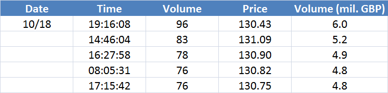 A legnagyobb volumenű tranzakciók az GBPUSD devizapáron: