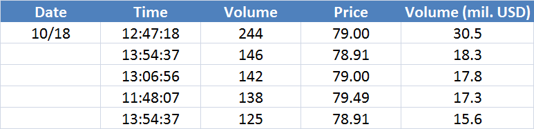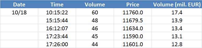 A legnagyobb volumenű tranzakciók az OIL (Brent) instrumentumon: