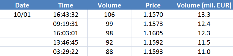 A legnagyobb volumenű tranzakciók az EURUSD devizapáron: