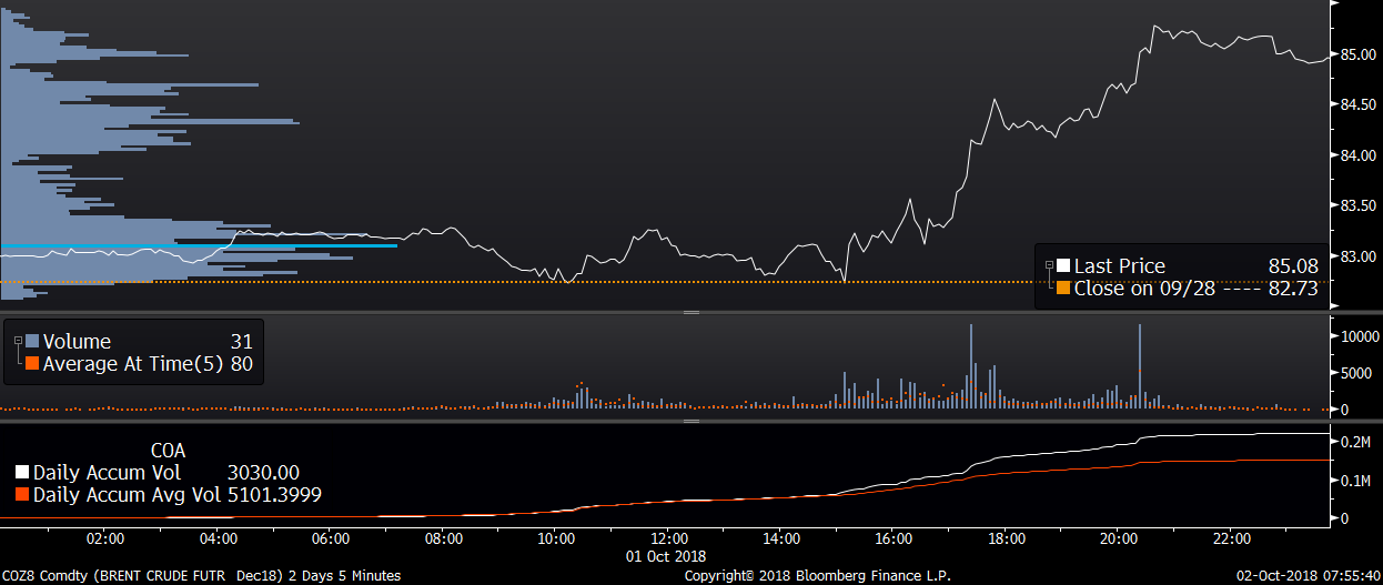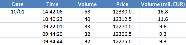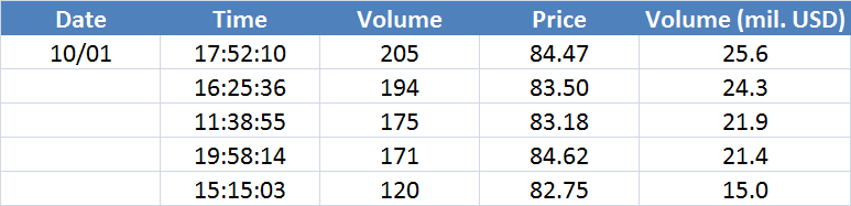 A legnagyobb volumenű tranzakciók az OIL (Brent) instrumentumon: