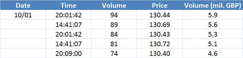 A legnagyobb volumenű tranzakciók az GBPUSD devizapáron: