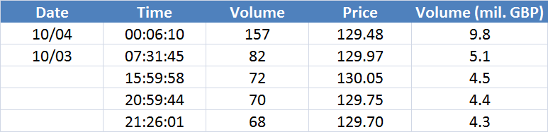 A legnagyobb volumenű tranzakciók az GBPUSD devizapáron: