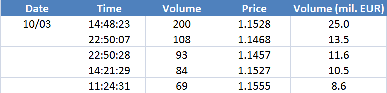 A legnagyobb volumenű tranzakciók az EURUSD devizapáron:
