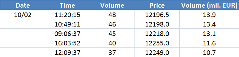 A legnagyobb volumenű tranzakciók a DAX részvényindexen: