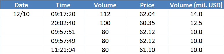 A legnagyobb volumenű tranzakciók az OIL (Brent) instrumentumon: