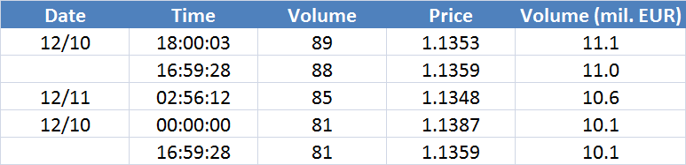 A legnagyobb volumenű tranzakciók az EURUSD devizapáron:
