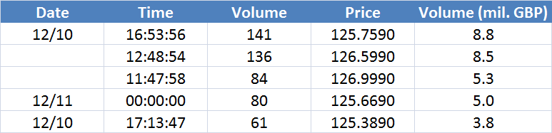 A legnagyobb volumenű tranzakciók a GBPUSD devizapáron: