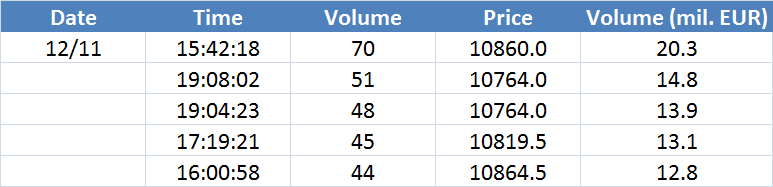 A legnagyobb volumenű tranzakciók a DAX részvényindexen: