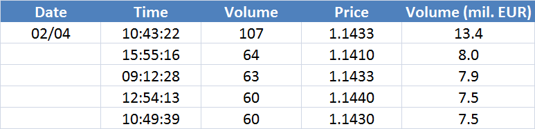 A legnagyobb volumenű tranzakciók az EURUSD devizapáron: