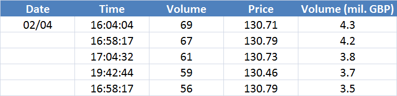 A legnagyobb volumenű tranzakciók a GBPUSD devizapáron: