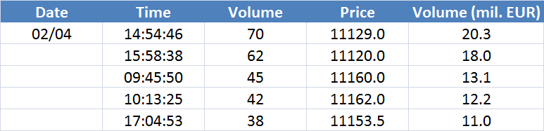 A legnagyobb volumenű tranzakciók a DAX részvényindexen: