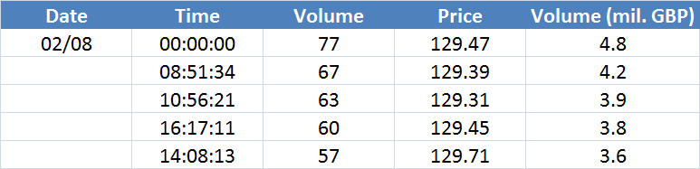 A legnagyobb volumenű tranzakciók a GBPUSD devizapáron: