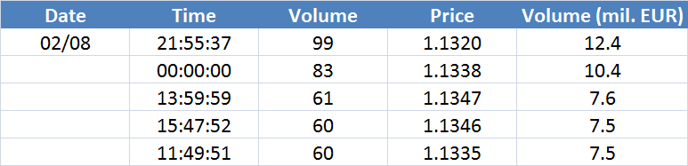 - legtöbb tranzakció az 1.1330 árszinten történt