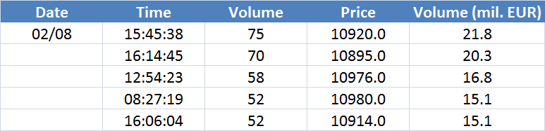 A legnagyobb volumenű tranzakciók a DAX részvényindexen: