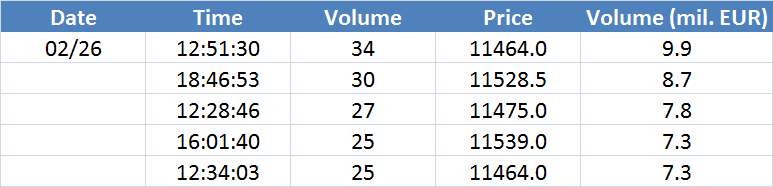 A legnagyobb volumenű tranzakciók a DAX részvényindexen: