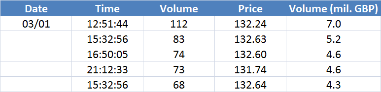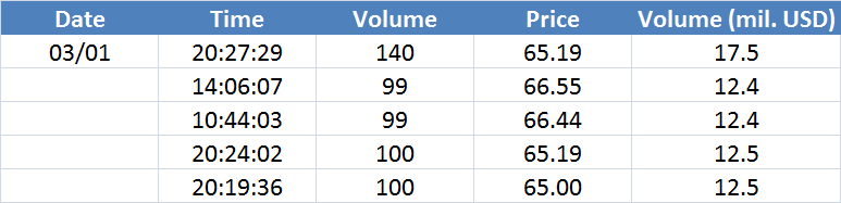 A legnagyobb volumenű tranzakciók az OIL (Brent) instrumentumon: