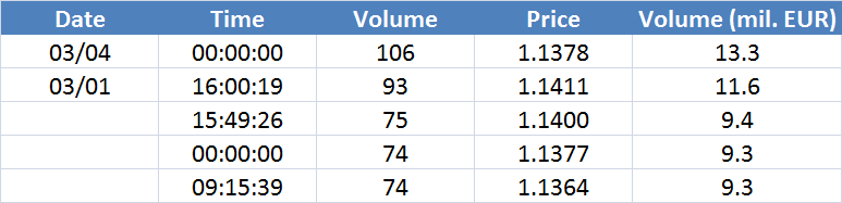A legnagyobb volumenű tranzakciók az EURUSD devizapáron: