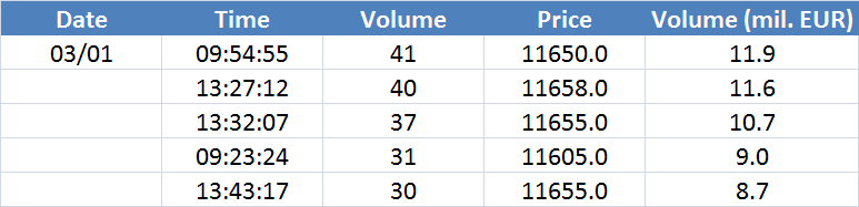 A legnagyobb volumenű tranzakciók a DAX részvényindexen: