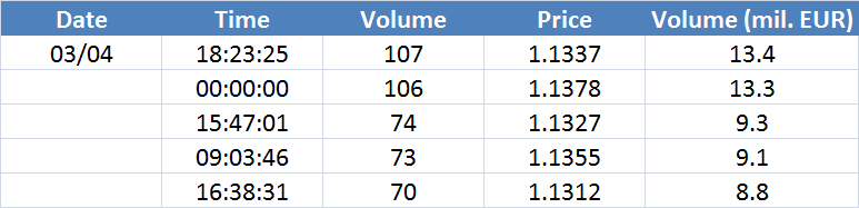 A legnagyobb volumenű tranzakciók az EURUSD devizapáron: