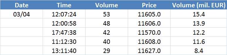 A legnagyobb volumenű tranzakciók a DAX részvényindexen: