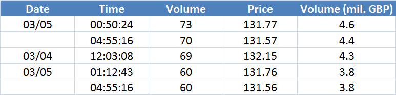A legnagyobb volumenű tranzakciók a GBPUSD devizapáron: