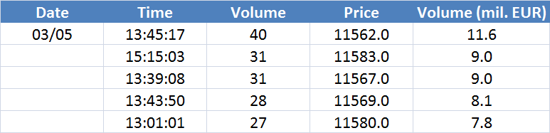 A legnagyobb volumenű tranzakciók a DAX részvényindexen: