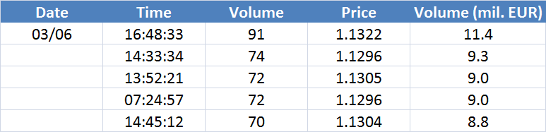 A legnagyobb volumenű tranzakciók az EURUSD devizapáron: