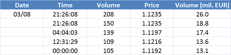 A legnagyobb volumenű tranzakciók az EURUSD devizapáron: