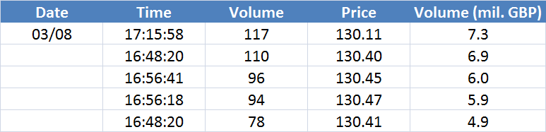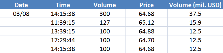A legnagyobb volumenű tranzakciók az OIL (Brent) instrumentumon: