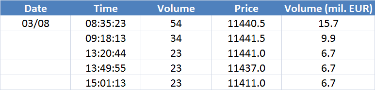 A legnagyobb volumenű tranzakciók a DAX részvényindexen: