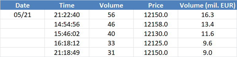 A legnagyobb volumenű tranzakciók a DAX részvényindexen: