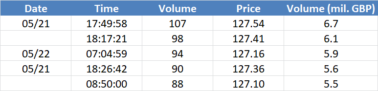 A legnagyobb volumenű tranzakciók a GBPUSD devizapáron: