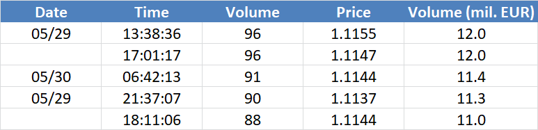 - legtöbb tranzakció az 1.1155 árszinten történt