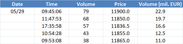 A legnagyobb volumenű tranzakciók a DAX részvényindexen:
