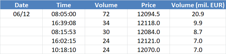 A legnagyobb volumenű tranzakciók a DAX részvényindexen: