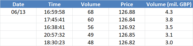 A legnagyobb volumenű tranzakciók a GBPUSD devizapáron: