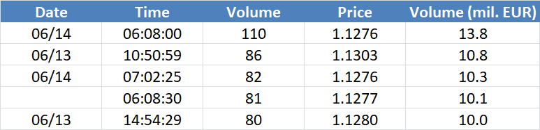 - legtöbb tranzakció az 1.1276 árszinten történt