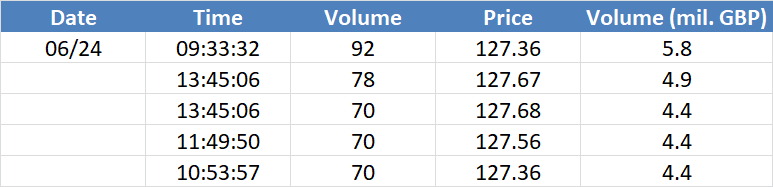 A legnagyobb volumenű tranzakciók a GBPUSD devizapáron: