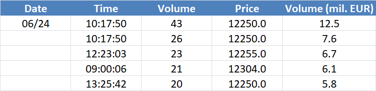 A legnagyobb volumenű tranzakciók a DAX részvényindexen: