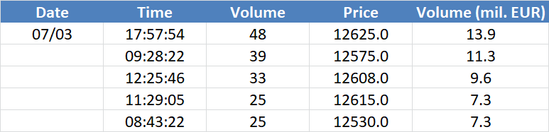 A legnagyobb volumenű tranzakciók a DAX részvényindexen:
