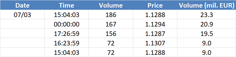A legnagyobb volumenű tranzakciók az EURUSD devizapáron: