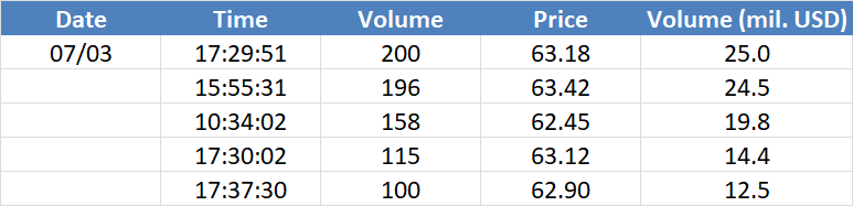 A legnagyobb volumenű tranzakciók az OIL (Brent) instrumentumon:
