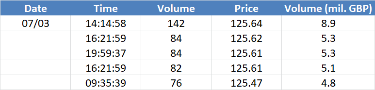 A legnagyobb volumenű tranzakciók a GBPUSD devizapáron: