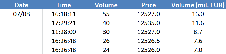 A legnagyobb volumenű tranzakciók a DAX részvényindexen: