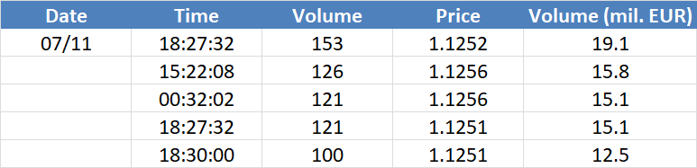 A legnagyobb volumenű tranzakciók a EURUSD devizapáron: