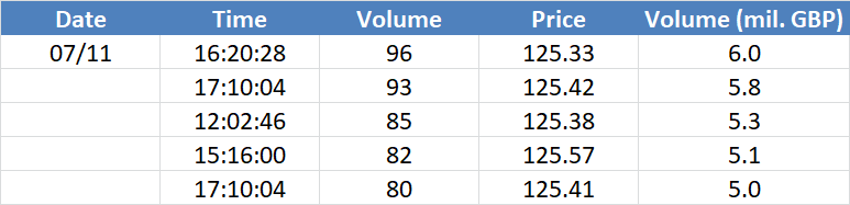 A legnagyobb volumenű tranzakciók a GBPUSD devizapáron: