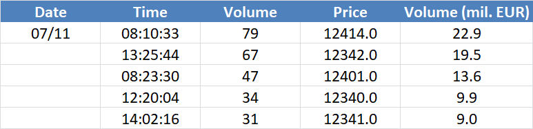 A legnagyobb volumenű tranzakciók a DAX részvényindexen: