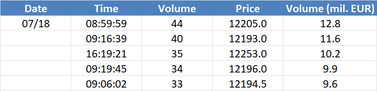 A legnagyobb volumenű tranzakciók a DAX részvényindexen: