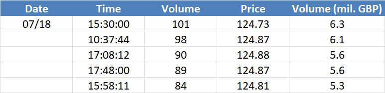 A legnagyobb volumenű tranzakciók a GBPUSD devizapáron: