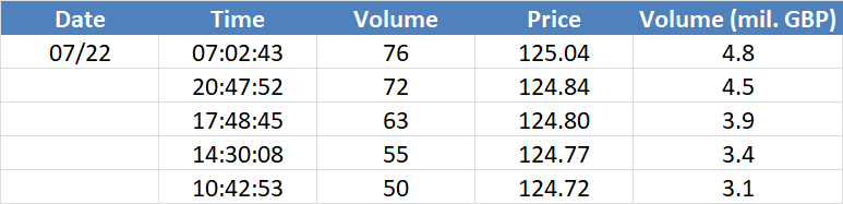 A legnagyobb volumenű tranzakciók a GBPUSD devizapáron: